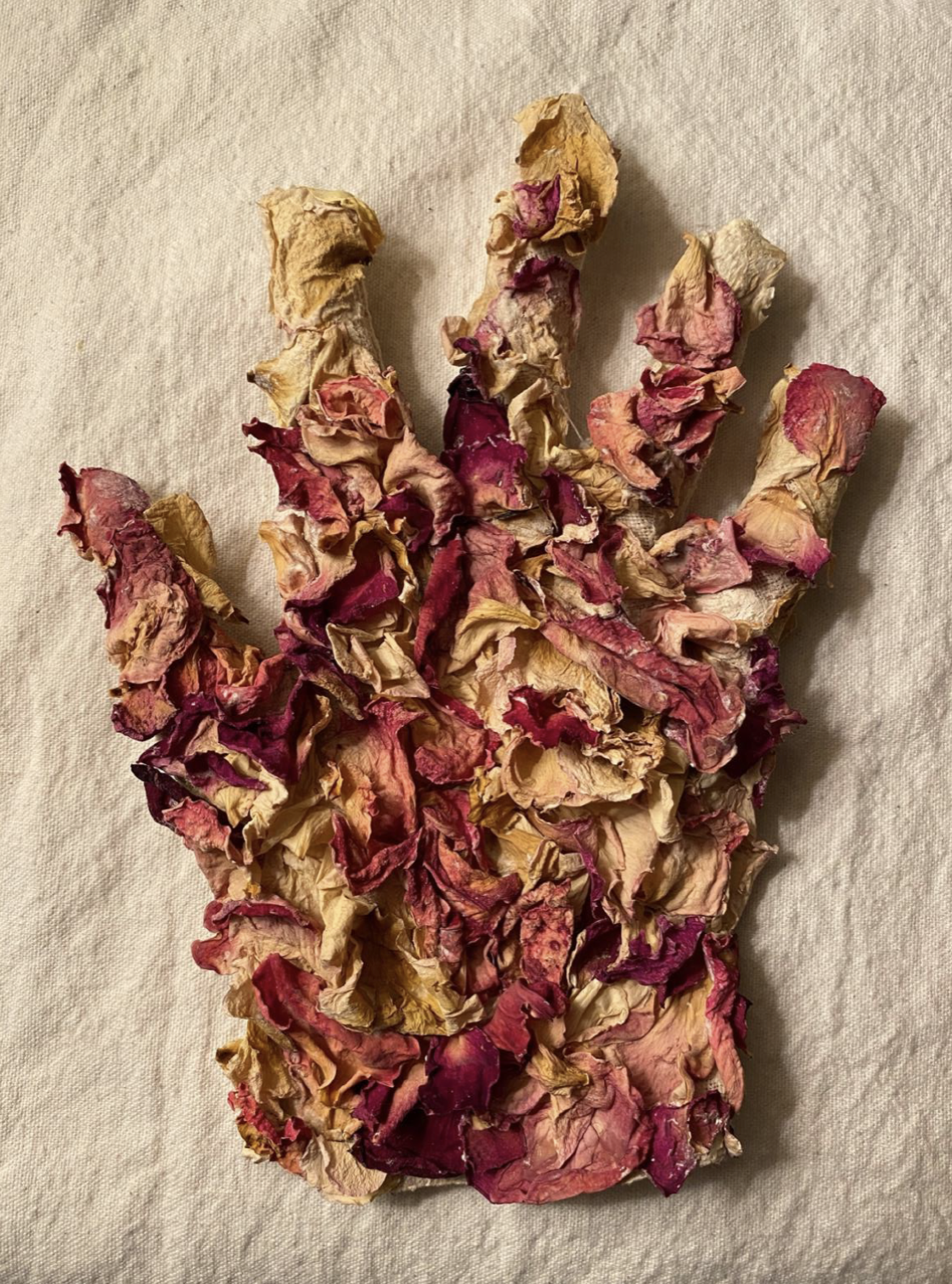 Linen and rose petals.